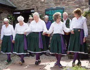 The Forest of Dean Morris Men was originally formed, as a men only side, in 1968. They dance out on summer Wednesday evenings at pubs in the Forest of Dean and Wye Valley areas. The FODM dance mostly traditional Cotswold dances, and some unique dances from the Forest. On the second weekend in June the Forest side hosts other Morris sides from across the country. This family friendly event has been held for over 40 years. A number of coaches take the colourful and varied sides to dance, and drink, at several pubs throughout the Forest of Dean and Wye Valley. They have performed at many different locations in England and Wales, also in Germany and France.